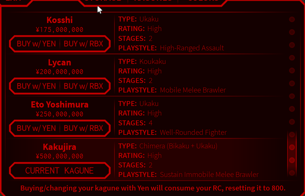 And the last thing is you could buy different kagunes from shops and they cost a bit. Yeah and that’s about it for kagunes.