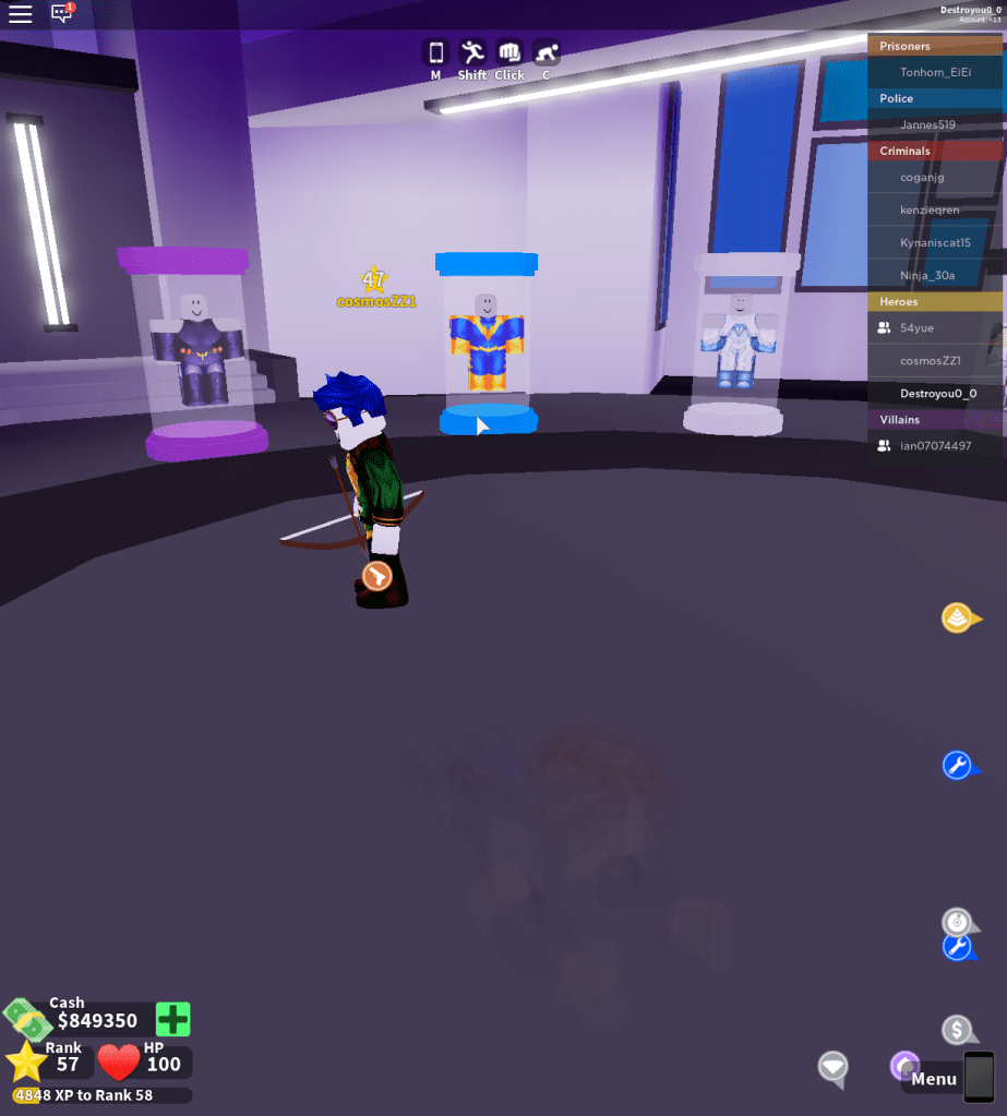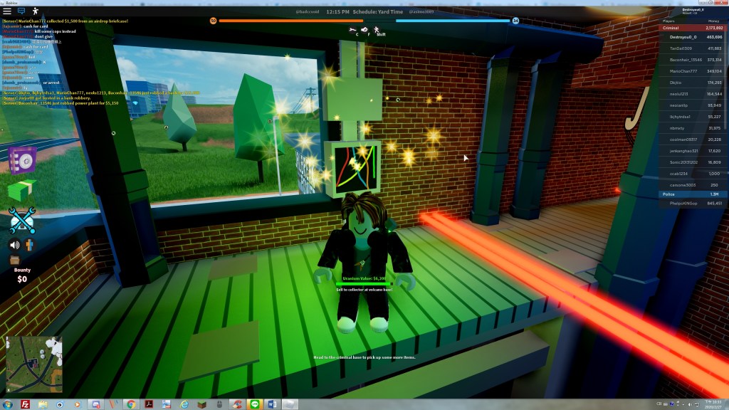 The Criminal You are now a criminal. You are now available to rob museums, banks, jewelry stores, power plants, doughnut shops, gas stations, cargo planes, and more! Being a criminal is about finding other criminals. By teaming up with them, you will be able challenged to do obbies (obstacle courses) in order to rob stores and defeat cops that are trying to arrest you.