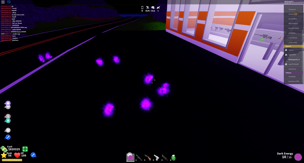 this allows you to hold any weapon invisible but the weapons!! also don’t shoot, aim or shift because that will make you visible. the best weapon for this glitch is the knife, its black small hard to see and does 40 damage!!!So what you need to do is get a knife become invisible and then cut them into pieces. Oh and BTW if you’re playing with friends use your aura(the purple thing) to show your spot when you’re invisible.