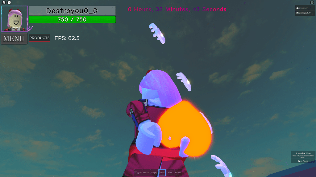 We made a small platform that holds 4 people. To fly with this, it requires 4 jet packs on each person. You know why? Because we are all connected to that platform and in order to fly we need to activate all our jet packs all at once! If someone did not activate their jet pack, we would fall, even die!!! Everyone listened to me and did as I command: “Up! Release! Up! Up! Keep pressing space bar.” We were scared that we would fall but excited at the same time. Things didn’t go so smoothly in the end because we forgot jet packs would run out of fuel. So, on our trip back, we needed to keep on spamming the space bar in order to keep our altitude.